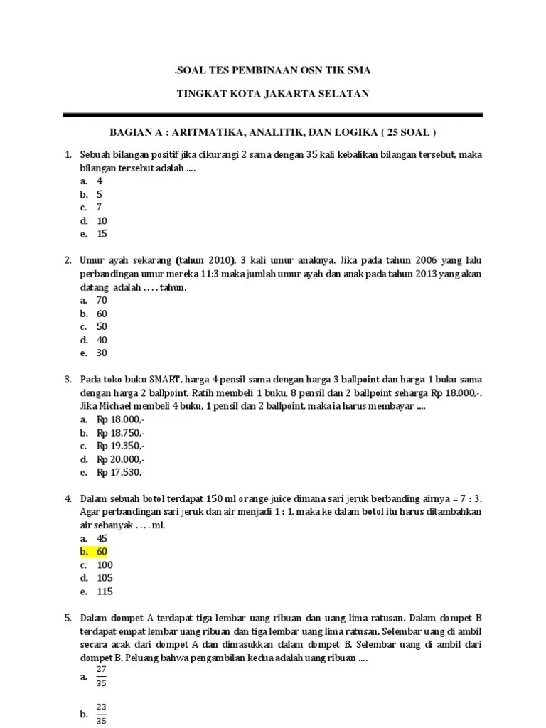 Kumpulan Soal Osn Tik / Pdf Soal Olimpiade Tik Dan Pembahasan Ahmad Nurfauzi Academia Edu : Soal olimpiade tik sma soal osn matematika sd tingkat provinsi soal.