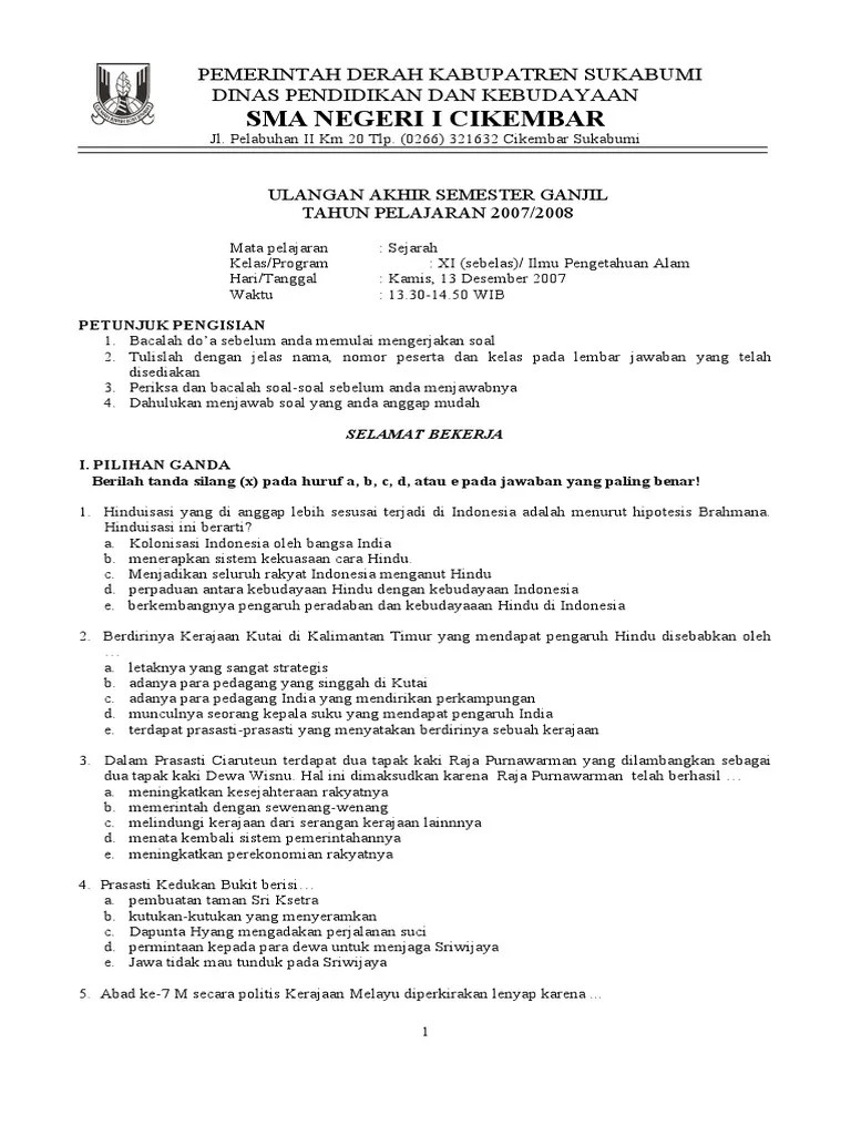 Dan apa dampaknya bagi perekonomian indonesia pada masa itu? Disajikan gambar contoh candi bercorak buddha di indonesia, peserta. Play this game to review history. Di akhir video ada soal pengayaan mengenai kerajaan hindu dan buddha. Peninggalan kerajaan hindu, budha, islam dan peninggalnnya. Kerajaan sriwijaya, ani memiliki keinginan agar bangsa indonesia kelak . Sejarah mengenai kerajaan indonesia diajarkan lebih fokus pada tingkat sma kelas. Kd, bahan kelas, materi, indikator soal, level kognitif, bentuk soal, no soal. Siapakah nama raja pertama pendiri dari kerajaan kutai. Soal, uraian soal + kunci jawaban, skor, jenis soal. Kerajaan majapahit merupakan suatu kerajaan yang besar dan . Berikut adalah soal mata pelajaran sejarah . Kerajaan hindu tertua di indonesia adalah kerajaan ….